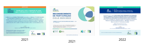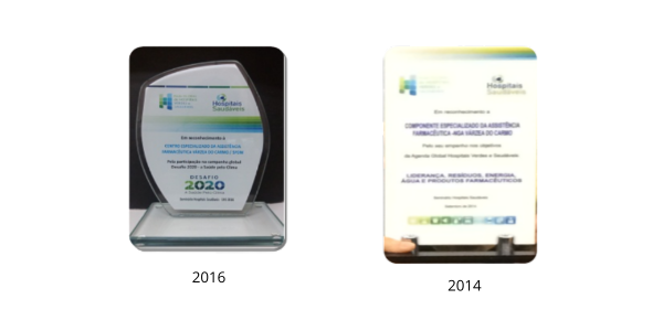 Pelo comprometimento com a Agenda Global de Hospitais Verdes e Saudáveis, as Unidades de Farmácia de Alto Custo foram reconhecidas com o Troféu de Membro Engajado em diversas edições.
